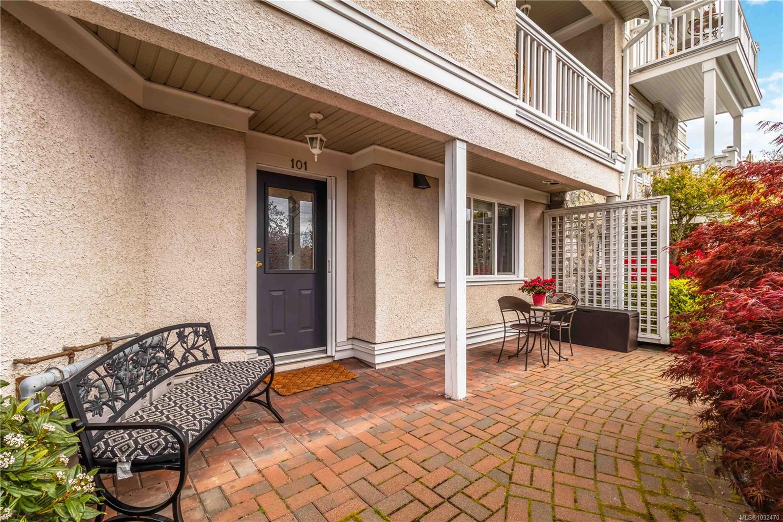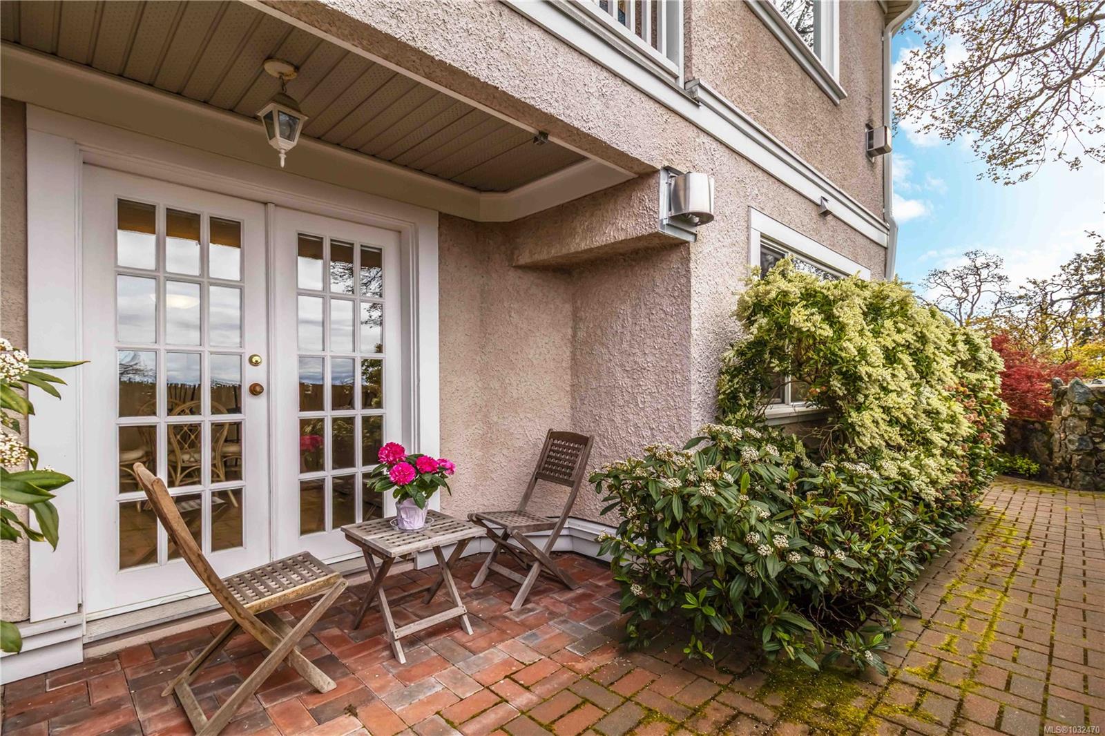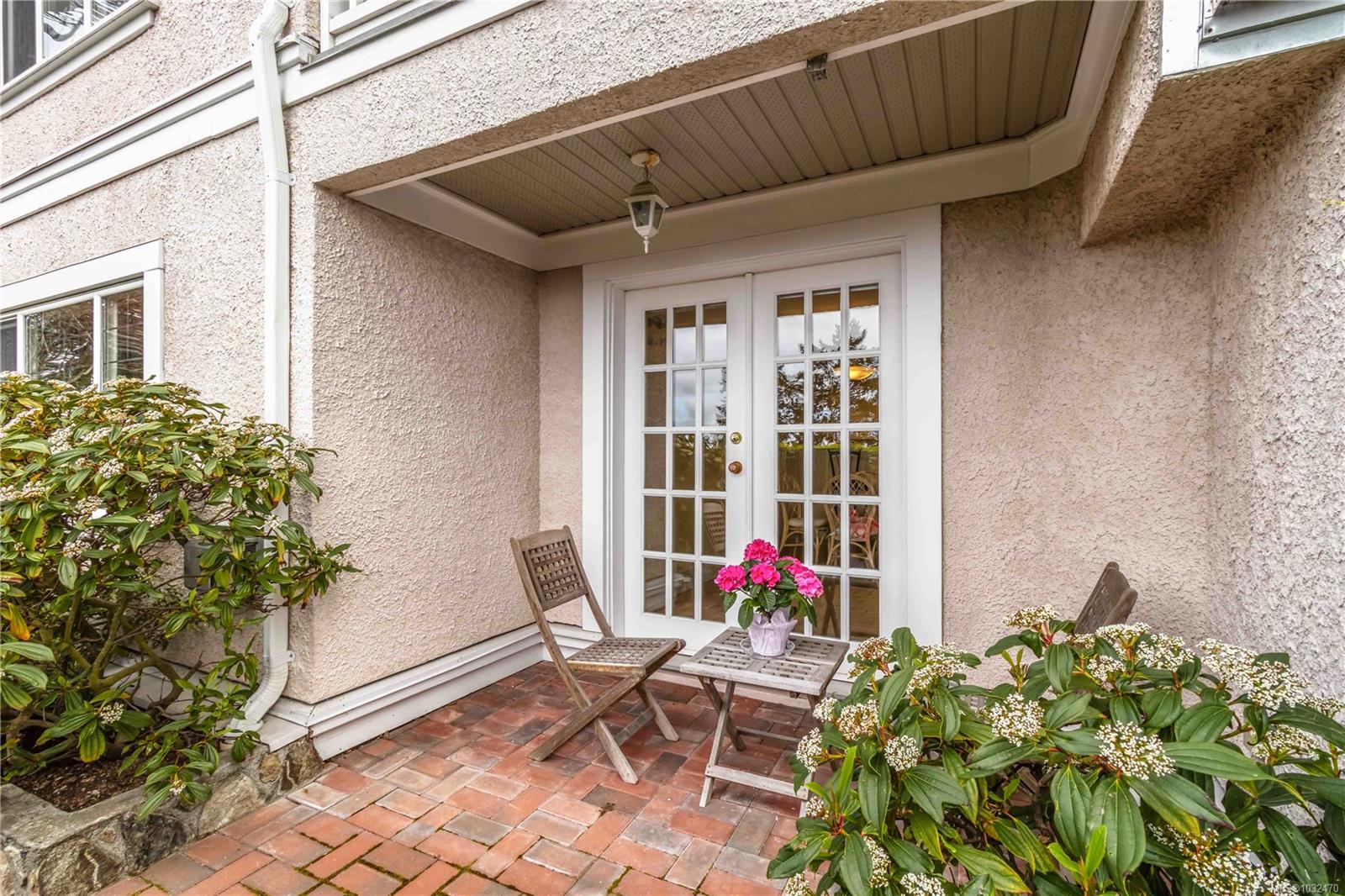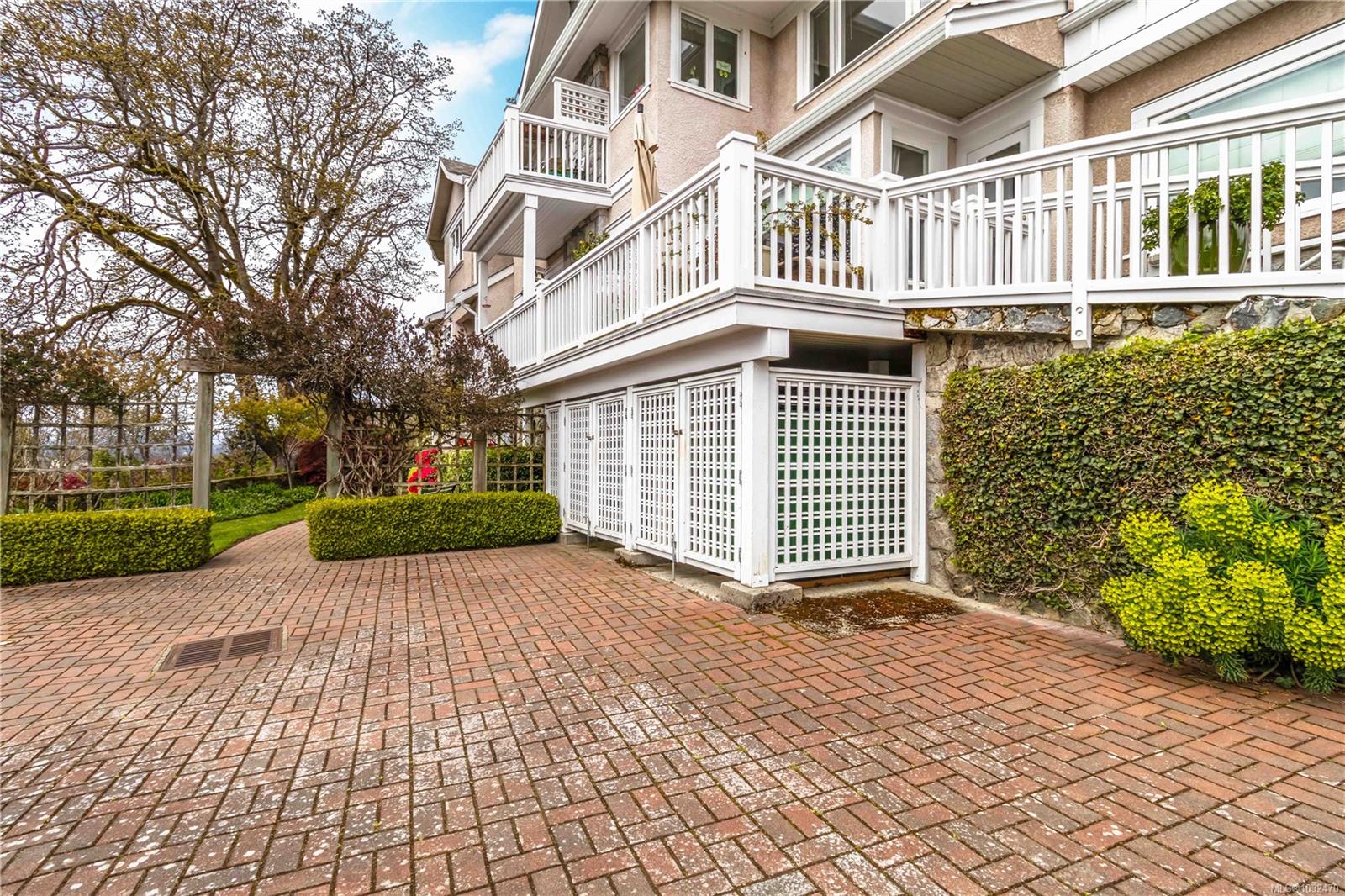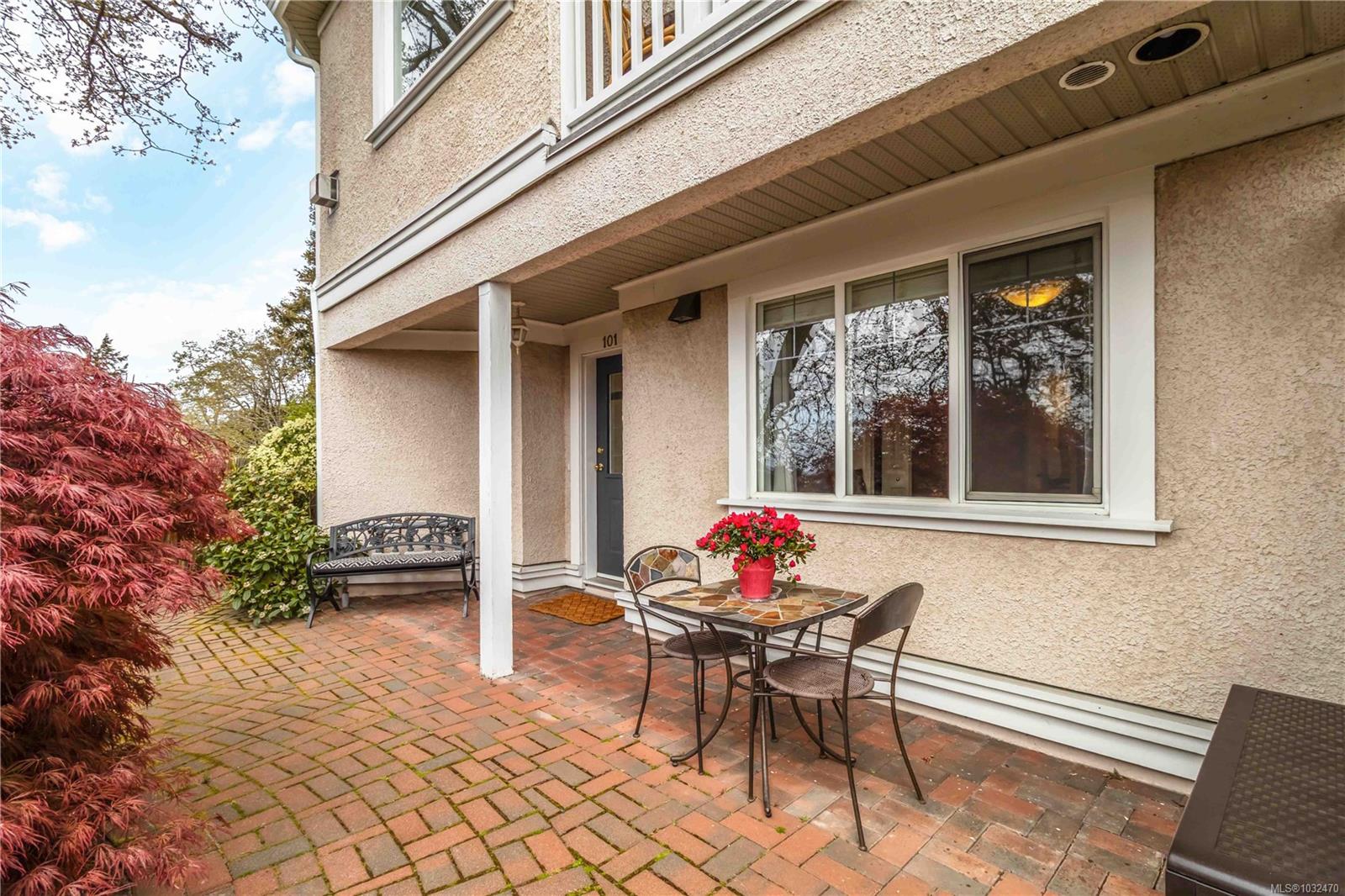 OPEN HOUSE SAT APRIL 18th 1:00-3:00PM....Classic British Arts and Crafts charm meets modern townhouse living in the sought-after Maplewood neighbourhood. Originally converted into 12 townhouse-style homes in 2001. This bright 2 bed, 2 bath home offers one-level living with beautiful city, ocean and Olympic Mountain views. Enjoy a quiet street setting just a short 15 minute drive to downtown, with Cedar Hill Golf Course, Playfair Park and Thrifty Foods within walking distance. The open-concept main living area features a gas fireplace, 2 private patios, and large windows bring in abundant natural light. The Primary bedroom includes a spacious walk-in closet and full ensuite, plus in-suite laundry nearby. Updates include newer laminate flooring, new paint in Primary Bedroom & both bathrooms, a Bosch dishwasher, new gas oven, new microwave, new hot water tank (2026) and a new roof (2025). Rare detached garage plus an additional outdoor parking stall closest to the unit. Beautiful landscaped courtyard entry and a well-run, friendly strata complete this offering. A must see!