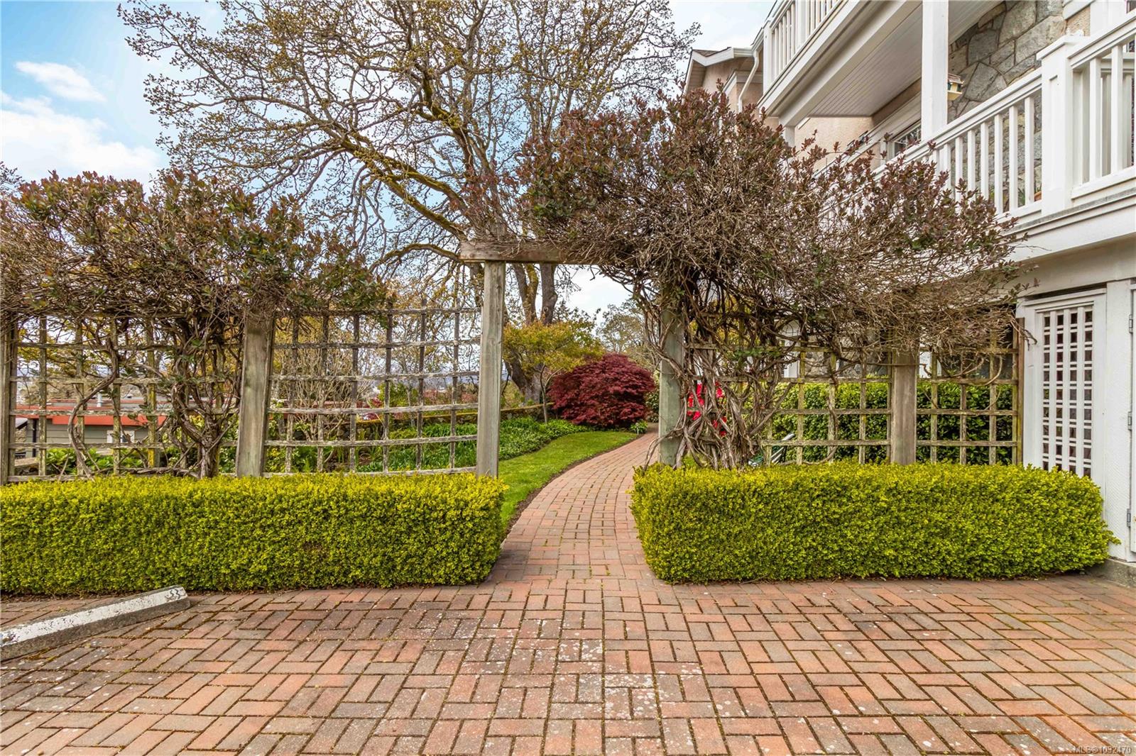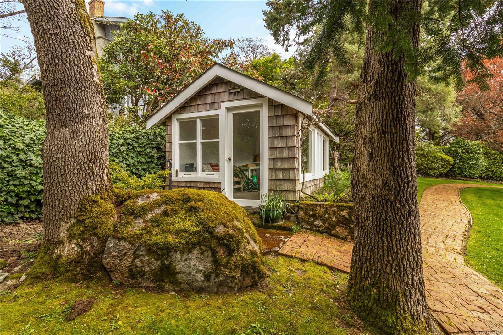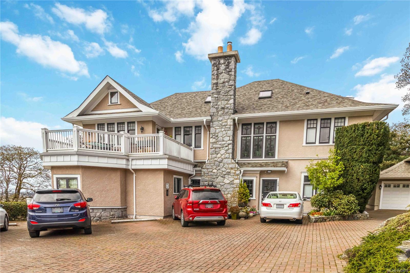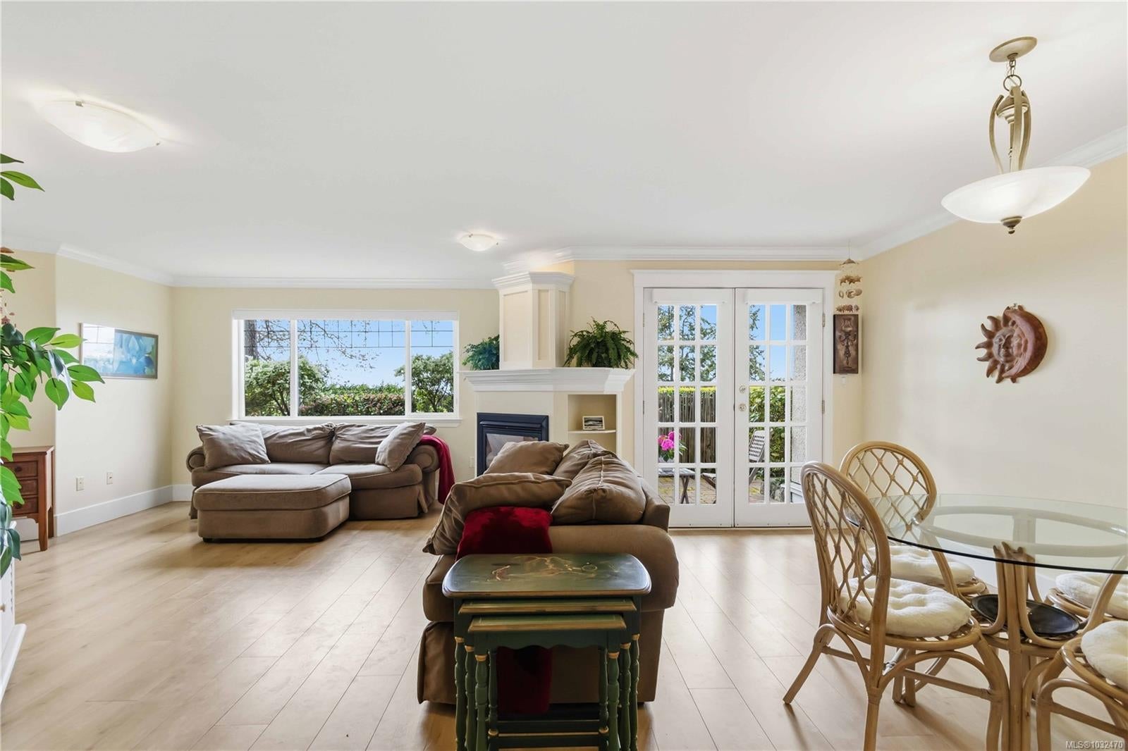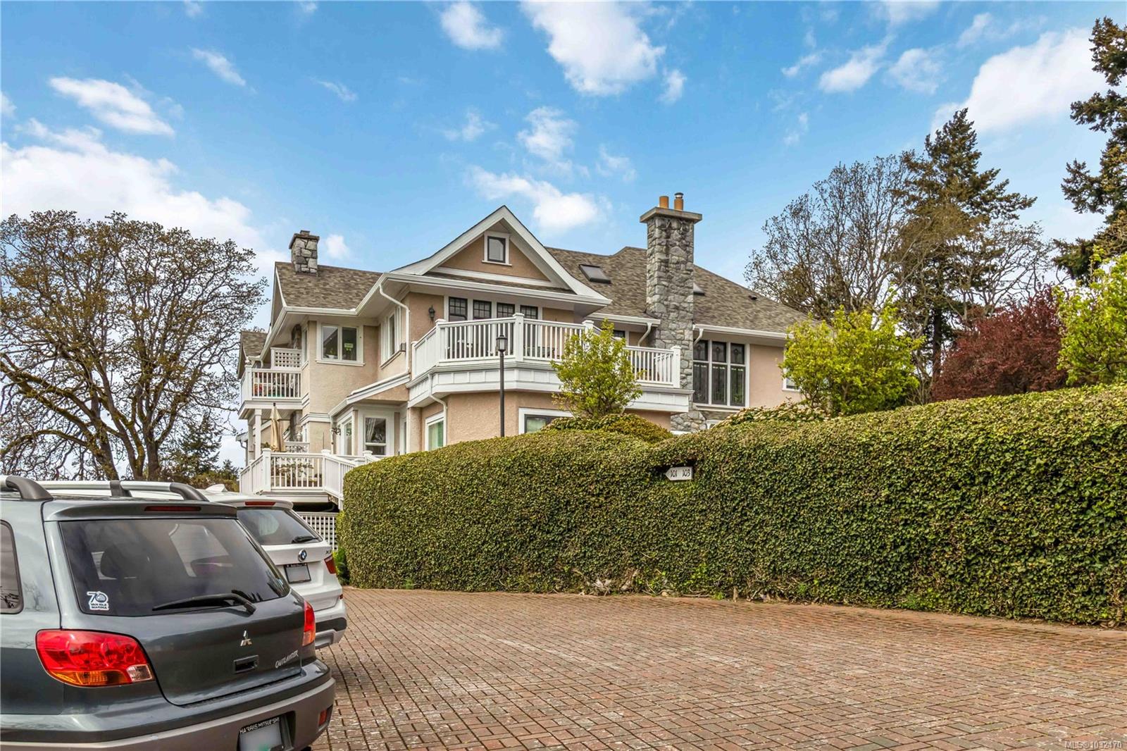 OPEN HOUSE SAT APRIL 18th 1:00-3:00PM....Classic British Arts and Crafts charm meets modern townhouse living in the sought-after Maplewood neighbourhood. Originally converted into 12 townhouse-style homes in 2001. This bright 2 bed, 2 bath home offers one-level living with beautiful city, ocean and Olympic Mountain views. Enjoy a quiet street setting just a short 15 minute drive to downtown, with Cedar Hill Golf Course, Playfair Park and Thrifty Foods within walking distance. The open-concept main living area features a gas fireplace, 2 private patios, and large windows bring in abundant natural light. The Primary bedroom includes a spacious walk-in closet and full ensuite, plus in-suite laundry nearby. Updates include newer laminate flooring, new paint in Primary Bedroom & both bathrooms, a Bosch dishwasher, new gas oven, new microwave, new hot water tank (2026) and a new roof (2025). Rare detached garage plus an additional outdoor parking stall closest to the unit. Beautiful landscaped courtyard entry and a well-run, friendly strata complete this offering. A must see!