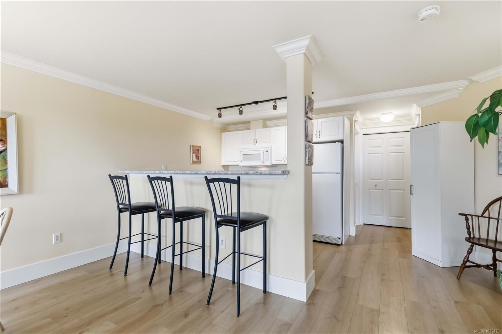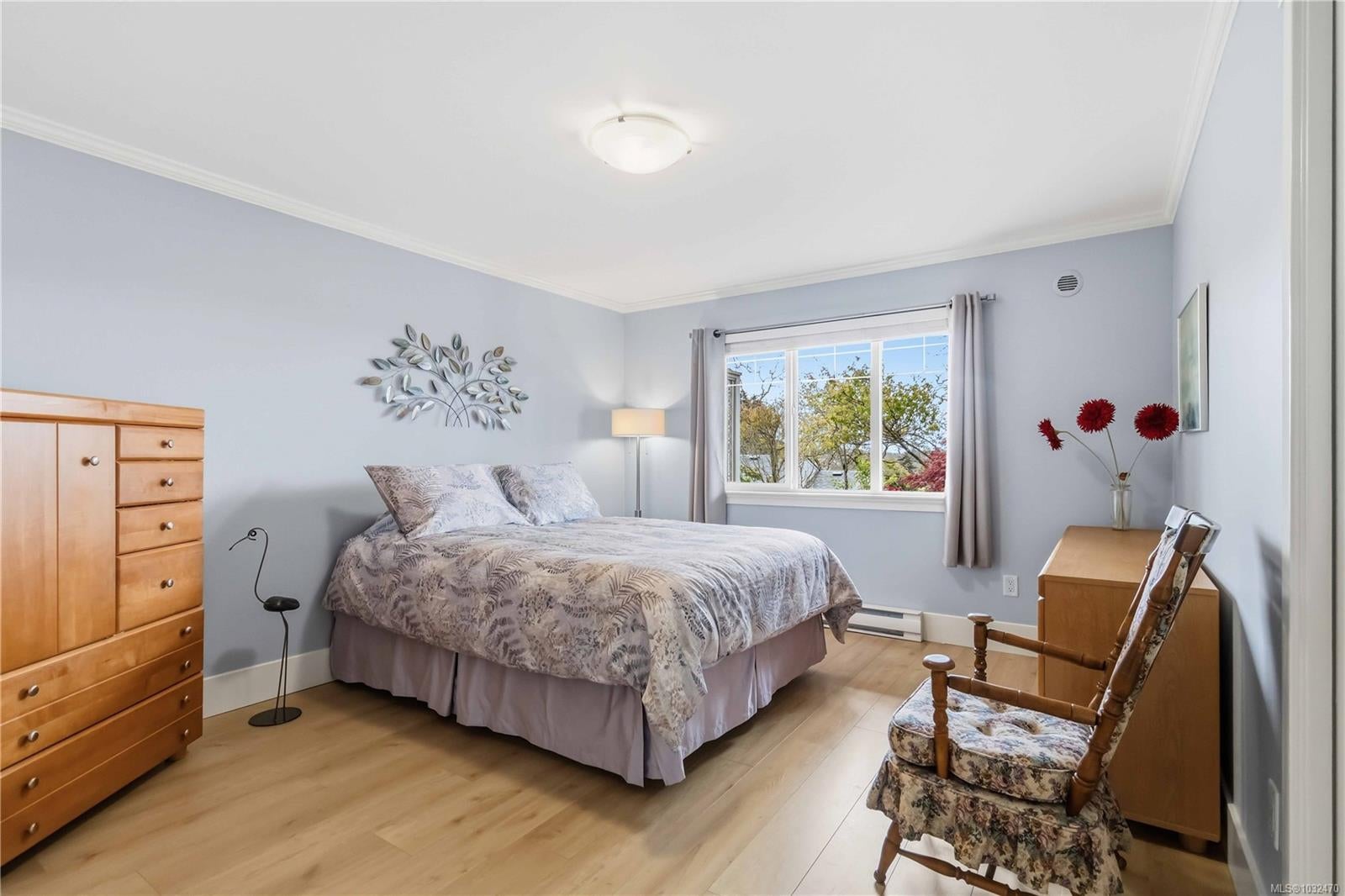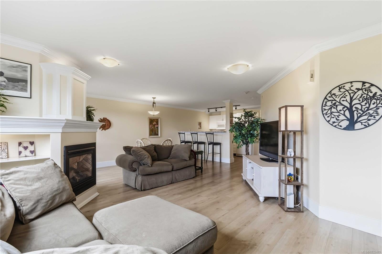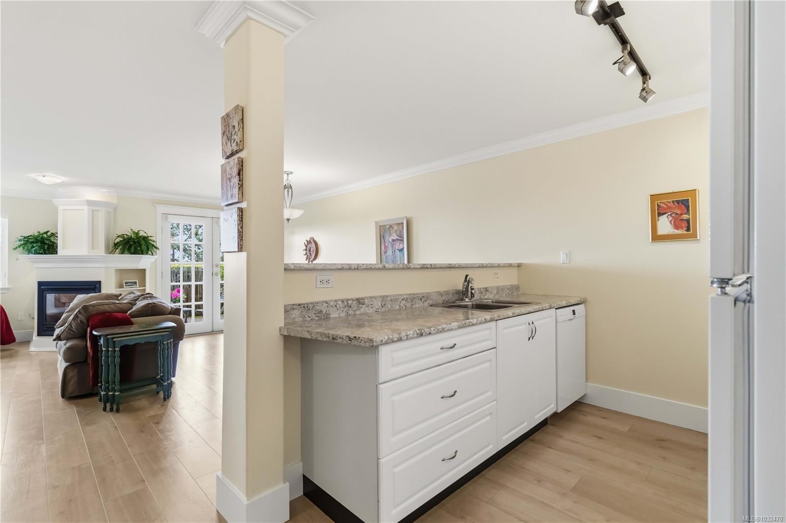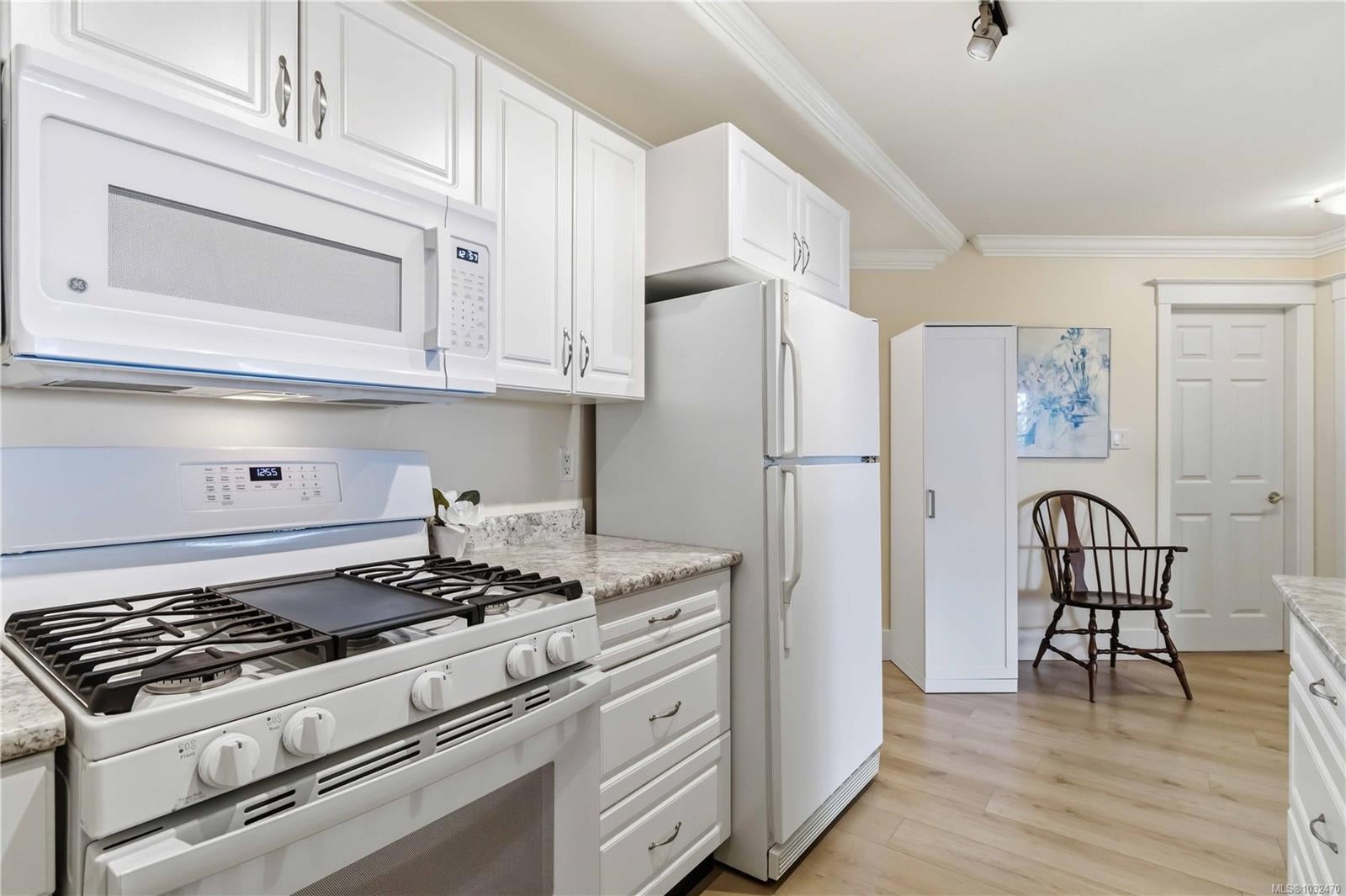 OPEN HOUSE SAT APRIL 18th 1:00-3:00PM....Classic British Arts and Crafts charm meets modern townhouse living in the sought-after Maplewood neighbourhood. Originally converted into 12 townhouse-style homes in 2001. This bright 2 bed, 2 bath home offers one-level living with beautiful city, ocean and Olympic Mountain views. Enjoy a quiet street setting just a short 15 minute drive to downtown, with Cedar Hill Golf Course, Playfair Park and Thrifty Foods within walking distance. The open-concept main living area features a gas fireplace, 2 private patios, and large windows bring in abundant natural light. The Primary bedroom includes a spacious walk-in closet and full ensuite, plus in-suite laundry nearby. Updates include newer laminate flooring, new paint in Primary Bedroom & both bathrooms, a Bosch dishwasher, new gas oven, new microwave, new hot water tank (2026) and a new roof (2025). Rare detached garage plus an additional outdoor parking stall closest to the unit. Beautiful landscaped courtyard entry and a well-run, friendly strata complete this offering. A must see!